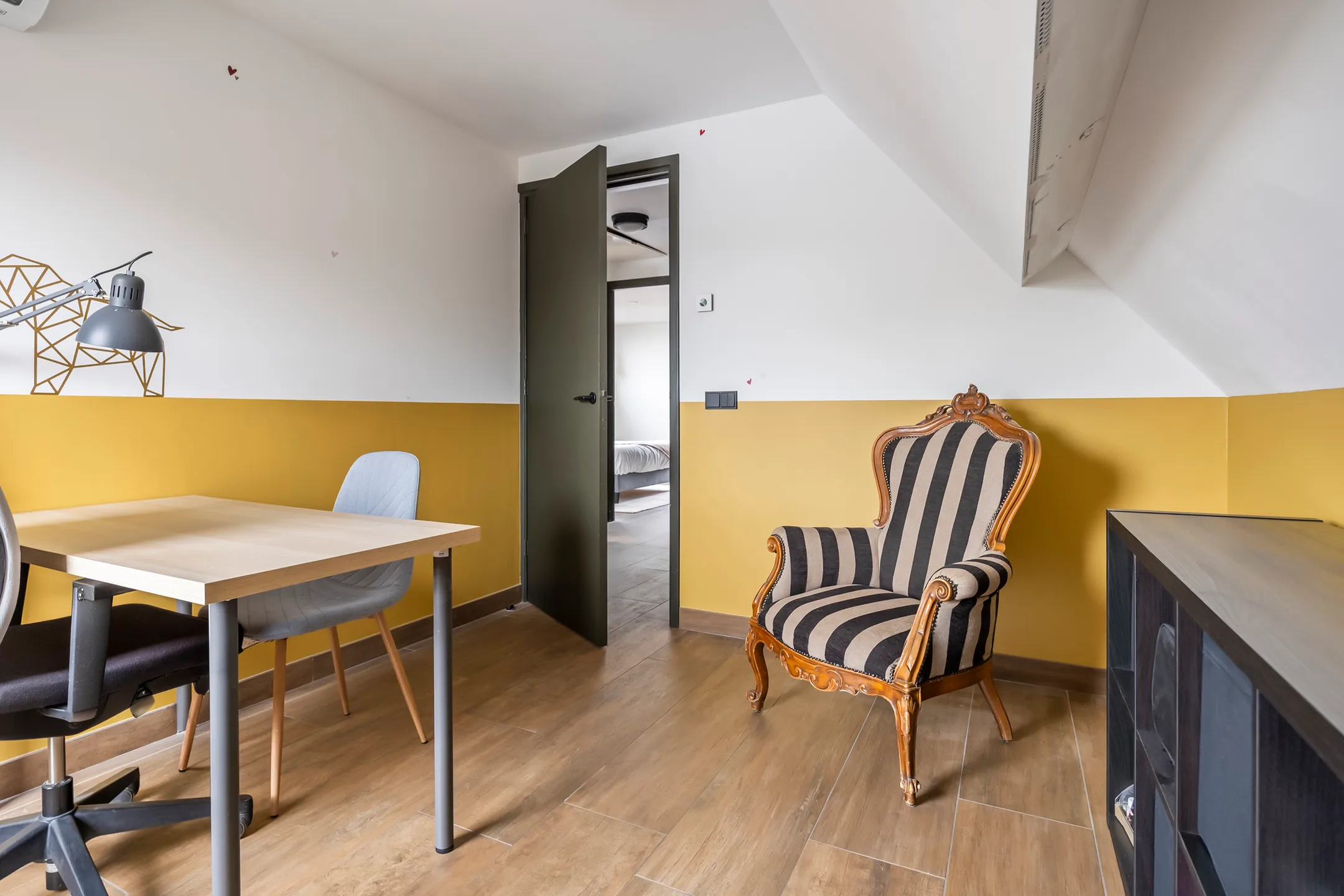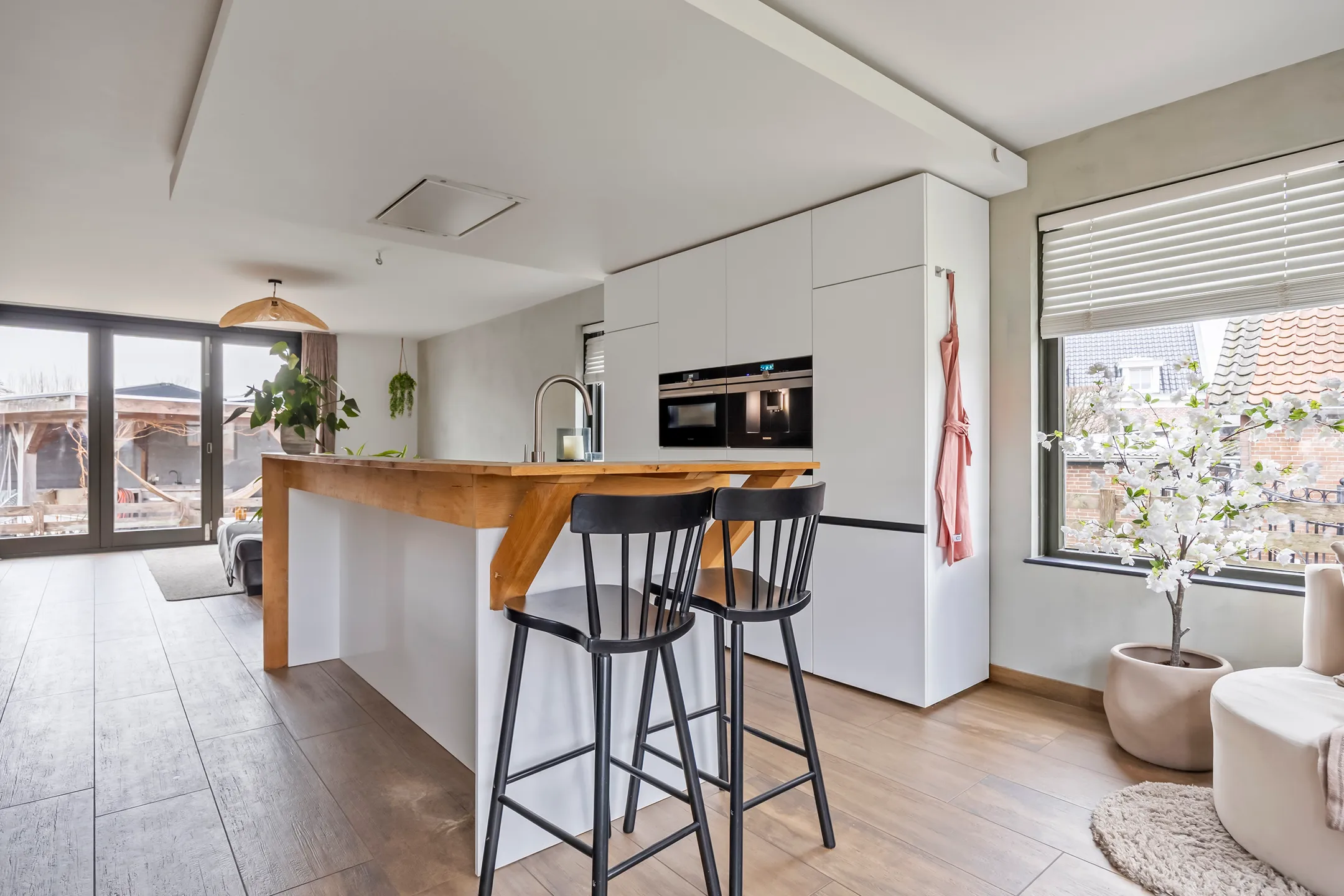 De grote raampartijen zorgen voor een aangename lichtinval en een open gevoel. De woning beschikt over in totaal vier kamers, waardoor er volop mogelijkheden zijn voor een gezin, thuiswerken of het creëren van een hobbyruimte.